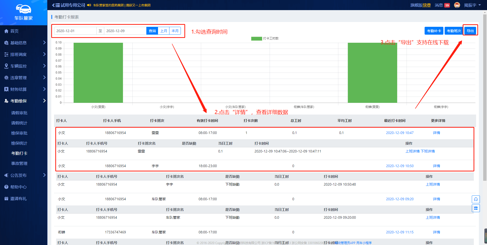 第五步:实时查看考勤报表并导出