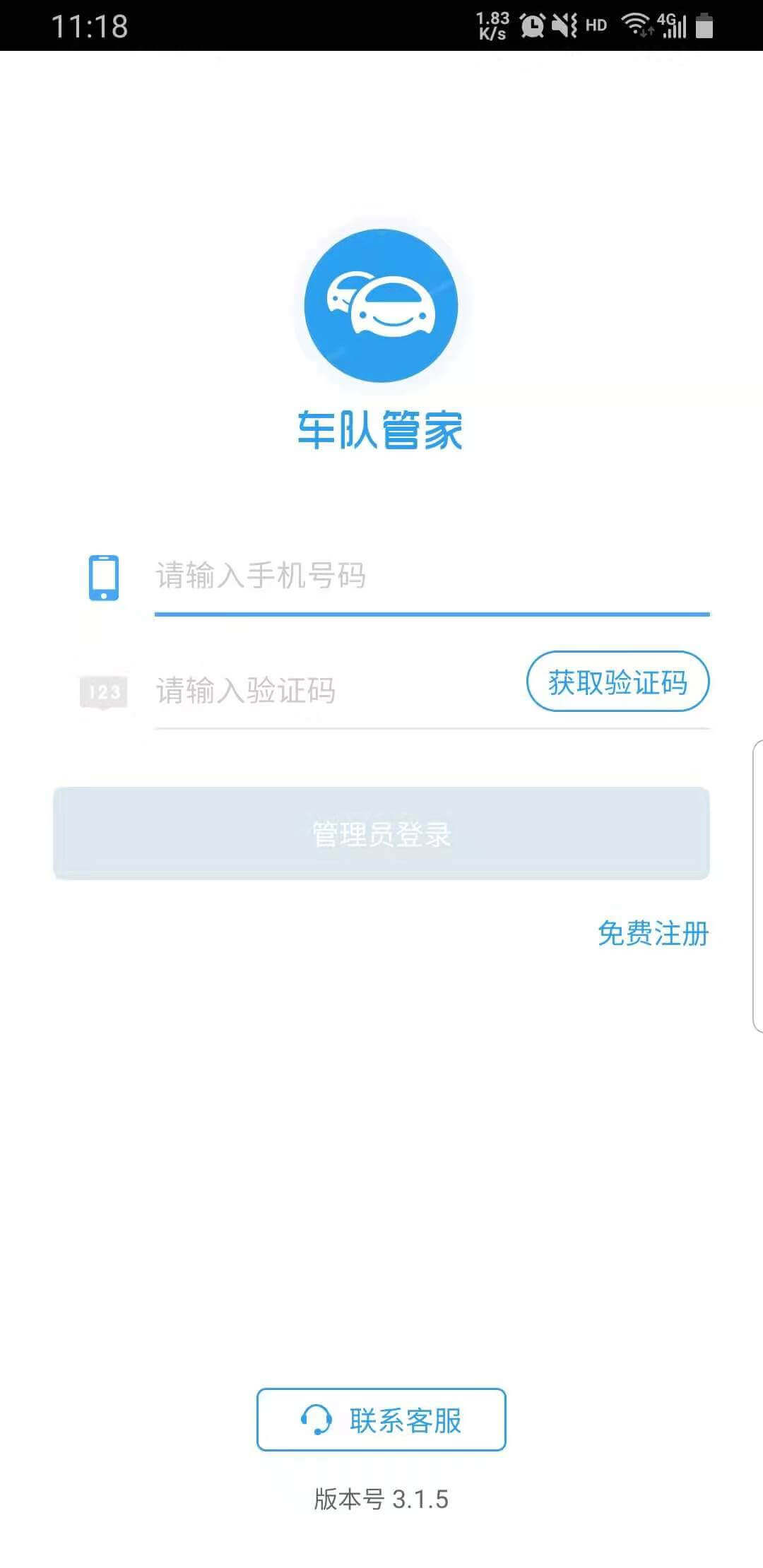 3) 下载“车队管家”管理员版APP,点击APP上登录按钮,填写账号信息进行登录。