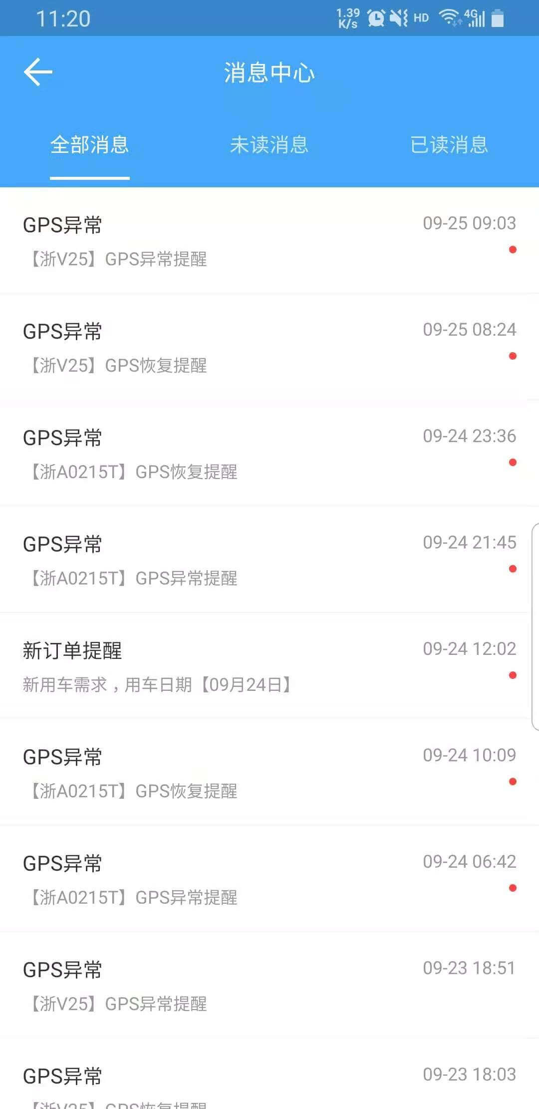 1)管理员可通过网页版“管理控制台-左侧菜单-日常管理-消息”查看所有消息通知。包含年检提醒,疲劳驾驶提醒,超速提醒,系统通知等。