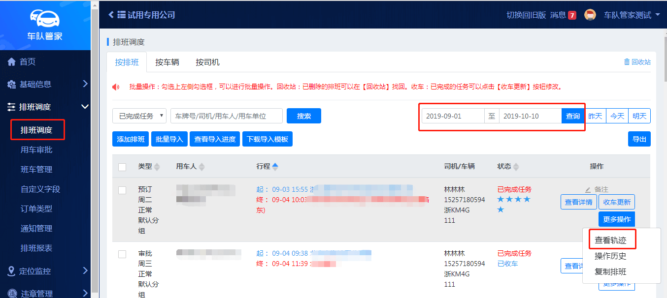系统自动提取已完成的任务所行驶的公里数,并与任务订单直接关联,亦可直接查看该任务的行驶轨迹,大大提高管理员效率。