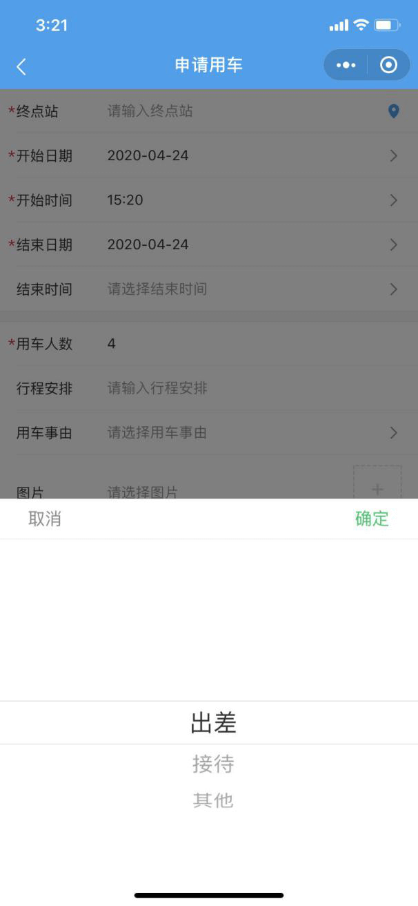 4)用车人和用车事由是自定义字段,可根据单位的实际情况勾选。(例如接机任务,管理员可在管理员端添加相关的航班号、入住酒店的信息)