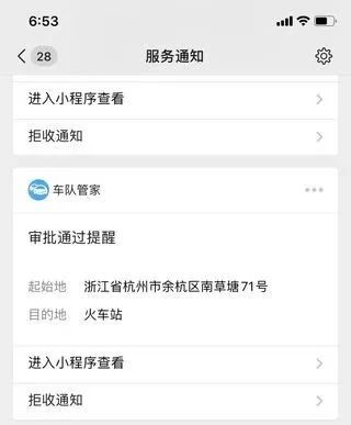 场景:申请用车后,系统将自动微信提醒用车人审批状态。 路径:微信小程序--申请用车--提交用车