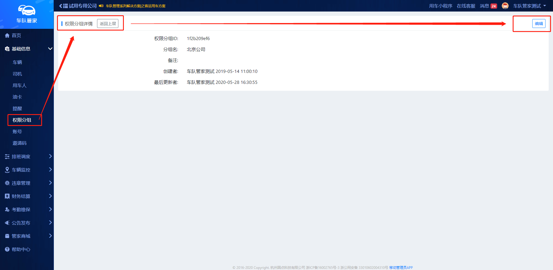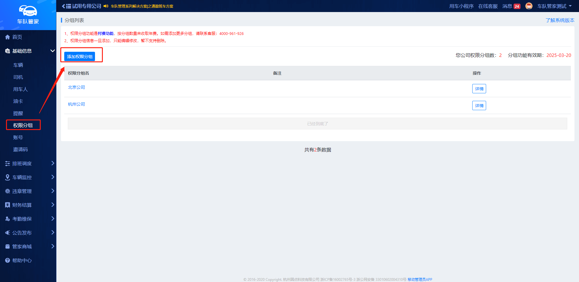 •注:权限分组信息一旦添加,只能编辑修改,暂不支持删除。