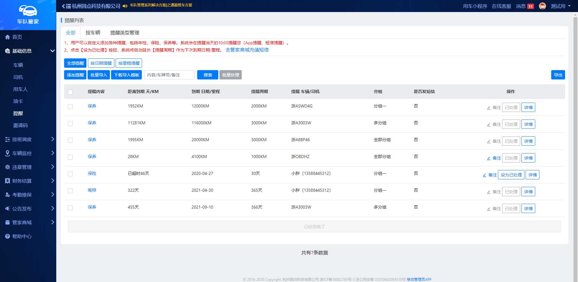 为避免食品易受到外界感染源的污染,管理员可通过车队管家后台进行司机请假审批,车辆进行定期的新冠病毒监测和全面杀毒等智能提醒,后台一键通知。