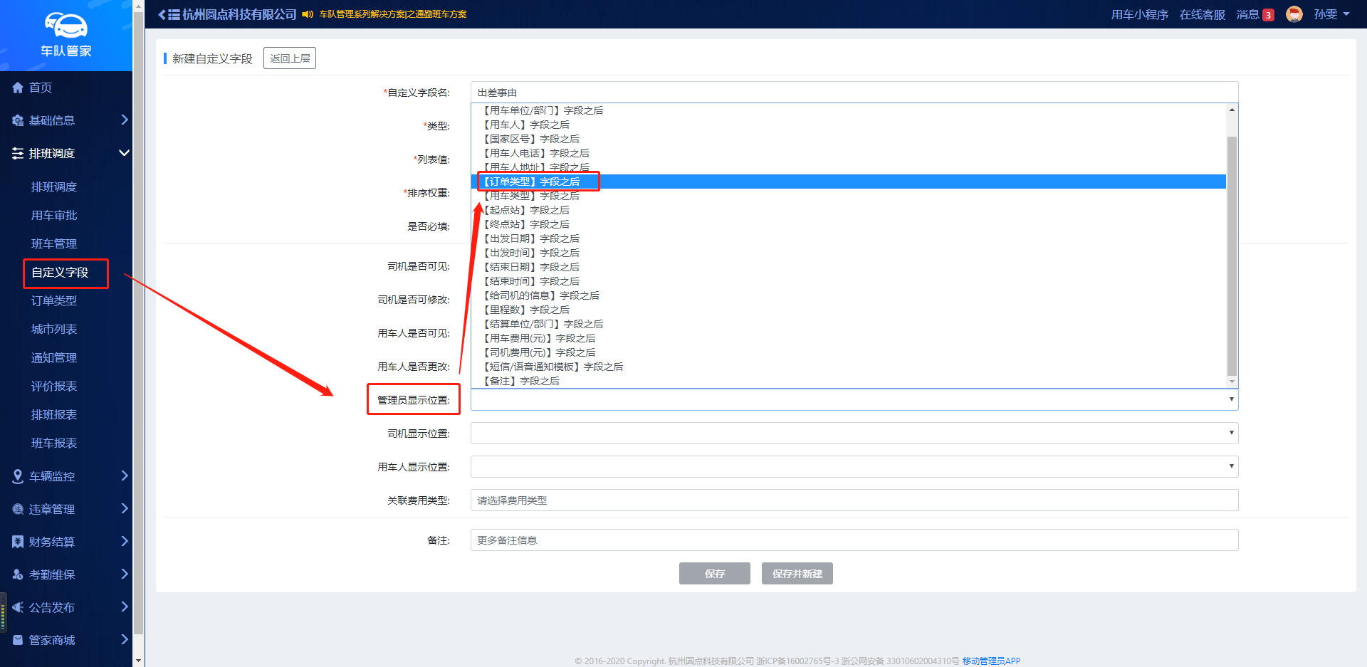 路径:管理员网页端--排班调度--自定义字段--添加自定义字段