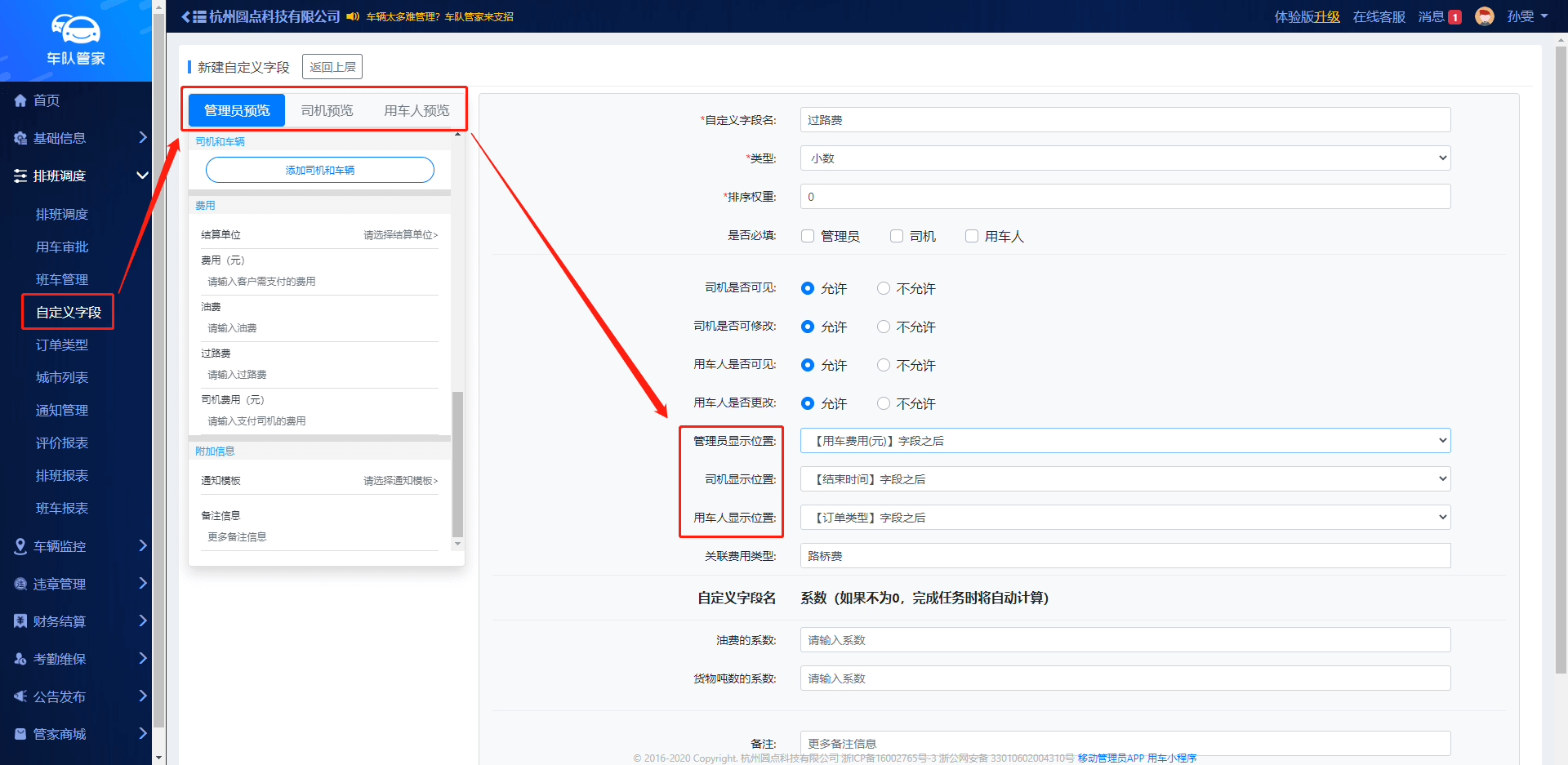 路径:管理员网页端--排班调度--自定义字段--添加自定义字段
