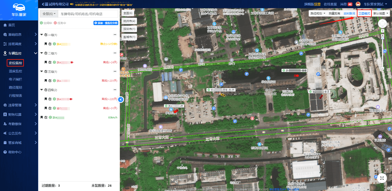 路径:管理员网页端--车辆监控--定位监控--卫星模式