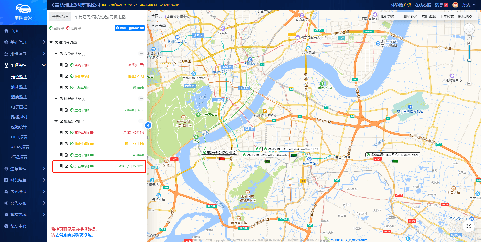 路径:管理员网页端--车辆监控--定位监控