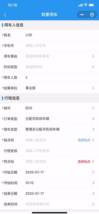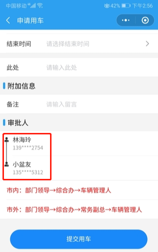 路径:用车小程序端--申请用车