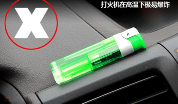许多驾驶员都有抽烟的习惯,于是车内会放置多款打火机,在经过长时间太阳的暴晒下,这类物品容易受热膨胀而发生爆炸,从而引发火灾。尤其是一些车用香水、摩丝、气体清新剂等,都属于具有安全隐患的物品。