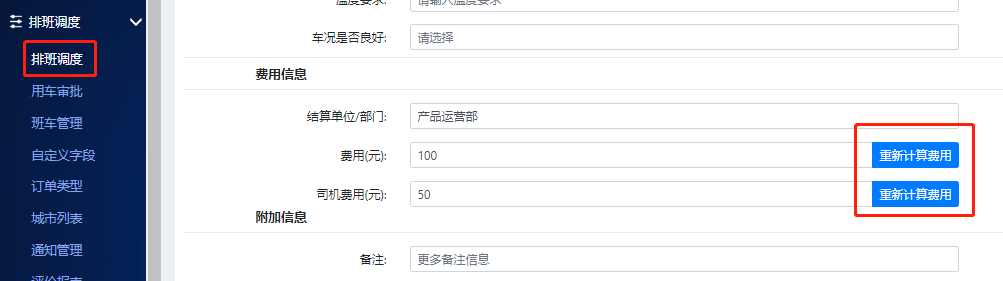 如您提前设置过调度费用的自动计价规则,还可以点击“重新计算费用”按钮,以二次启动自动计价器,重新计算任务费用。