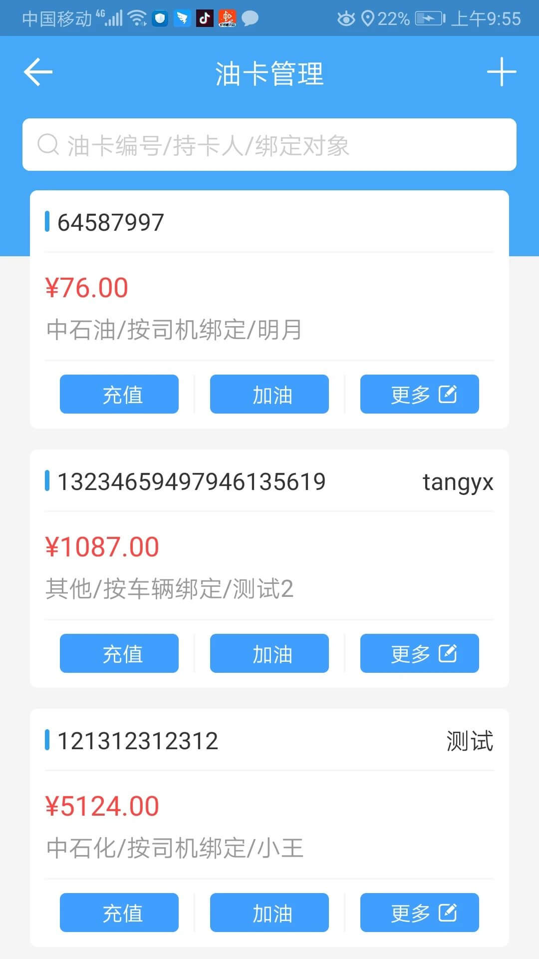 为确保加油卡管理流程明晰,实现油耗移动化自动管理,车队管家管理员APP也同步上线了油卡管理功能,可大幅提升管理效率。 路径:管理员APP端--基础信息--油卡