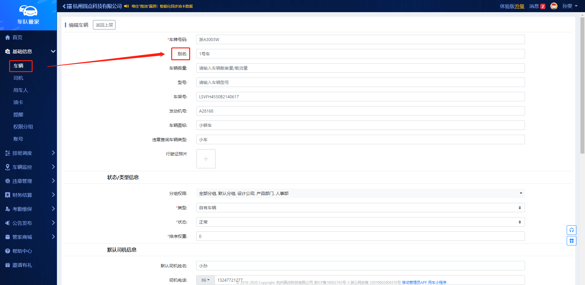 设置车辆别名:管理员网页端--基础信息--车辆--新建车辆
