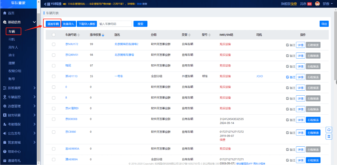 路径:管理员网页端--基础信息--车辆--添加车辆
