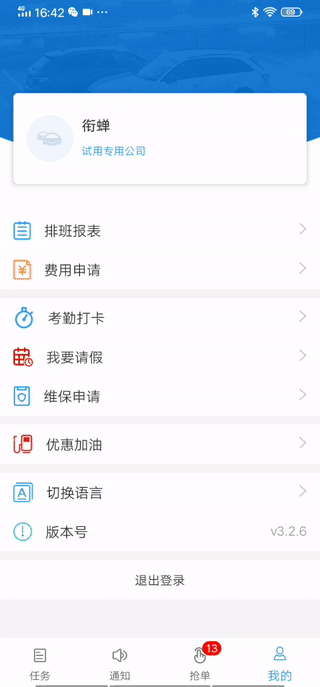 路径:管理员司机端--我的--考勤打卡