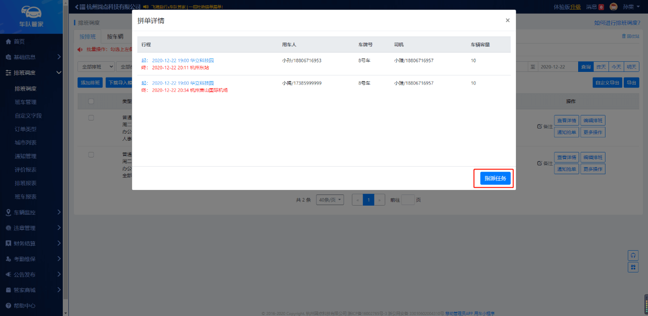 自动拼单完成后,管理员可直接指派任务(如下图):