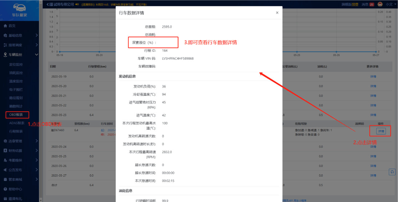 不同于汽油发动机,柴油汽车为避免尾气污染需要添加尿素,若想要实时掌握尿素值,管理员可通过OBD报表查看当前柴油车辆中的尿素液位。