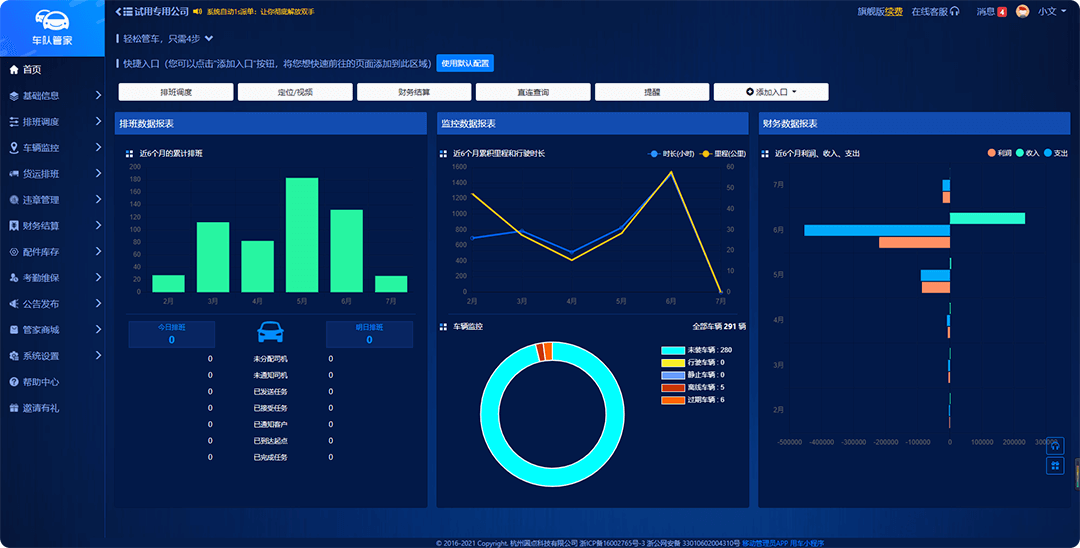 01 | 车辆GPS台账管理系统利用智能硬件设备精准获取车辆位置状态,总里程数,任务总时长,使车辆数据可视化,帮助用户评判车辆效益,后期可以选择低成本的车辆,在降低成本的同时高效完成运输任务。