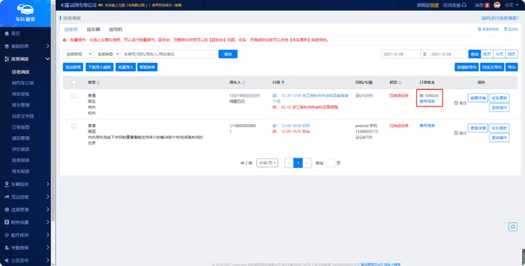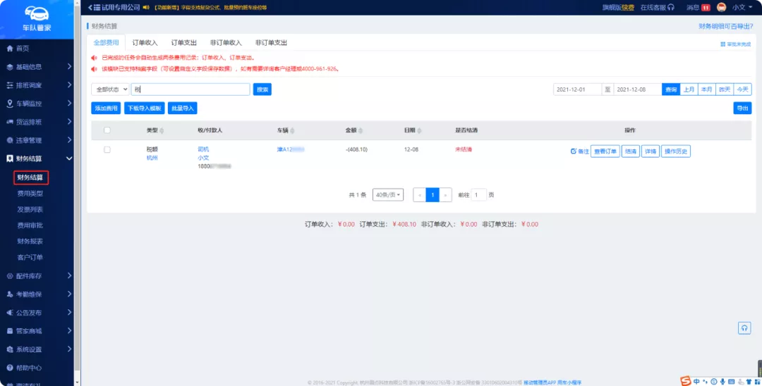 任务结束后,所有订单内产生的收支明细都会自动同步至『财务结算』模块,无需人工操作,这不仅让管理员和财务人员免去繁杂的计费工作,还能保证计费的准确性。