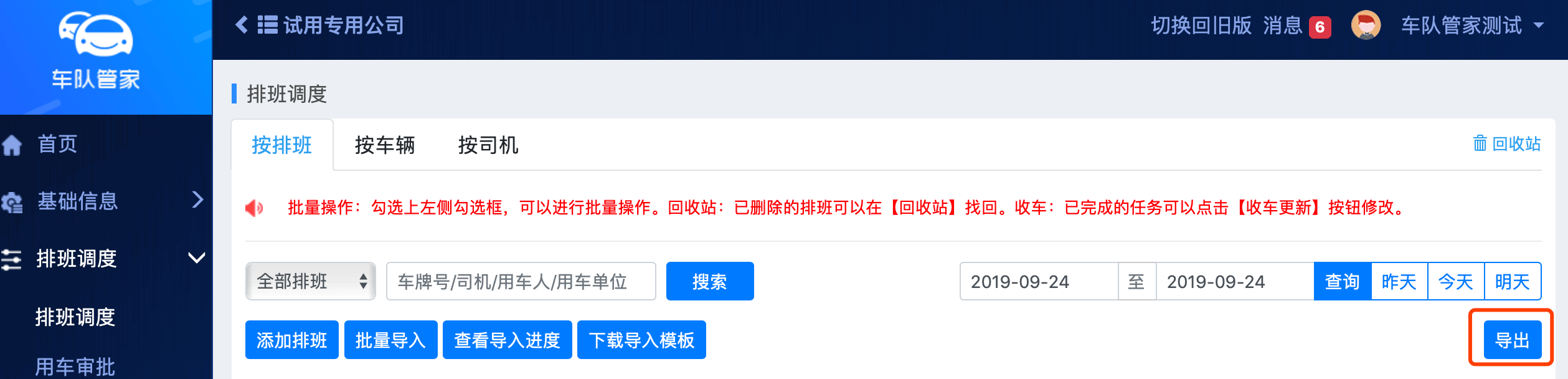 车队管家基本数据都支持导出。比如司机、车辆、用车人、排班列表,财务结算,统计分析等。其中司机、车辆、用车人、排班列表和财务结算列表方法大致相同,找到您需要导出的内容,在页面底部可选择部分导出,也可翻页后选择全部导出。统计分析则是选中需导出的报表日期,内容,并点击全部导出按钮即可。如图: